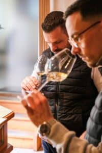 Un samedi de juin, un verre à la main, entouré de vignes à perte de vue.